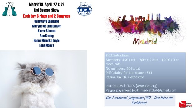 Exposición felina TICA y tradicional, Abril 2018, 100×100 Mascotas – Ifema.